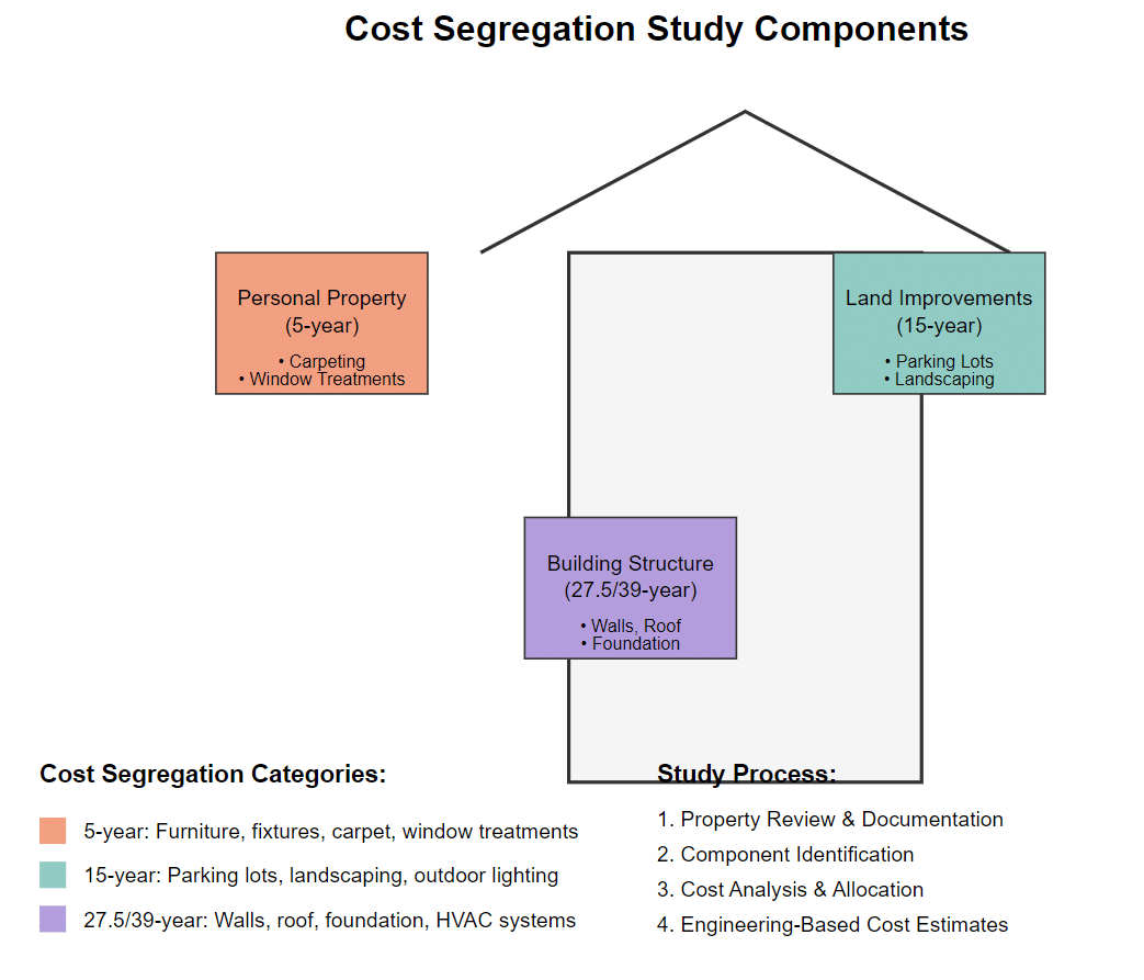 Engineering-based analysis determines exact allocations based on property specifics. This strategic reclassification can significantly accelerate depreciation deductions, potentially generating substantial tax savings in the early years of property ownership