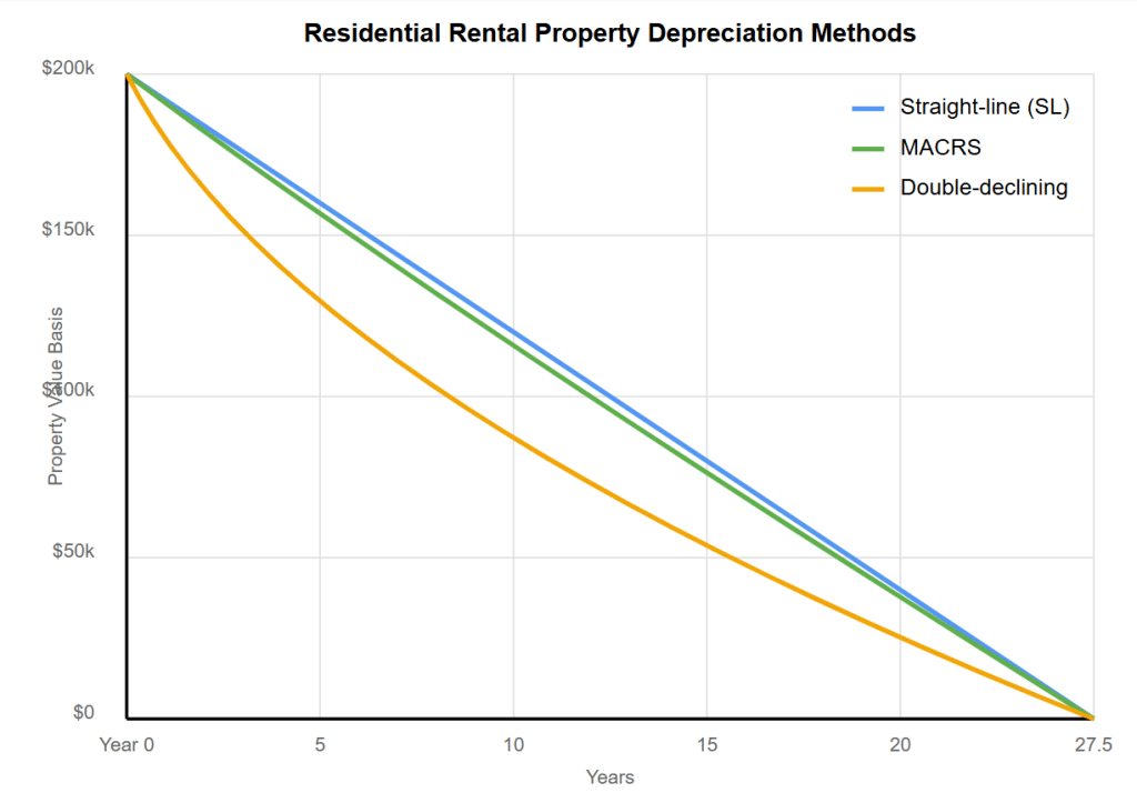Depreciation Calculation Example: “Let’s say you purchase land for $50,000 and construct a residential rental property for $200,000. The total cost basis is $250,000. After a cost segregation study, you determine that $20,000 of the building costs qualify for 5-year depreciation (personal property), and the remaining $180,000 falls under the 27.5-year residential rental property category. Using MACRS, your annual depreciation deductions would be significantly higher in the early years due to the accelerated depreciation on the 5-year property.”