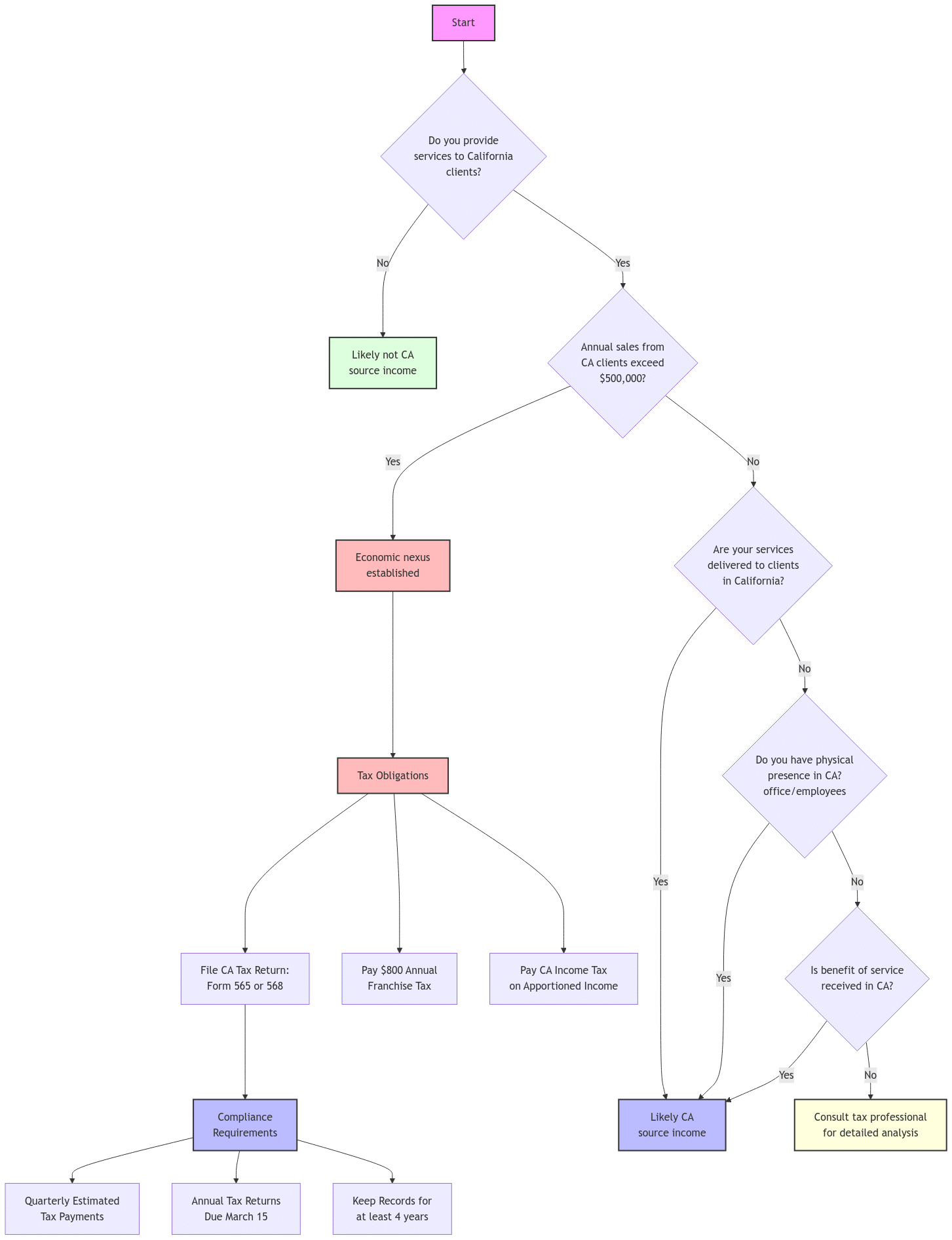 - California taxes income “sourced” in the state, even if your business is located elsewhere.