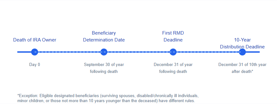 Understanding the critical deadlines for inherited IRAs is essential for proper planning and avoiding penalties. Below is a timeline of key dates you need to know: