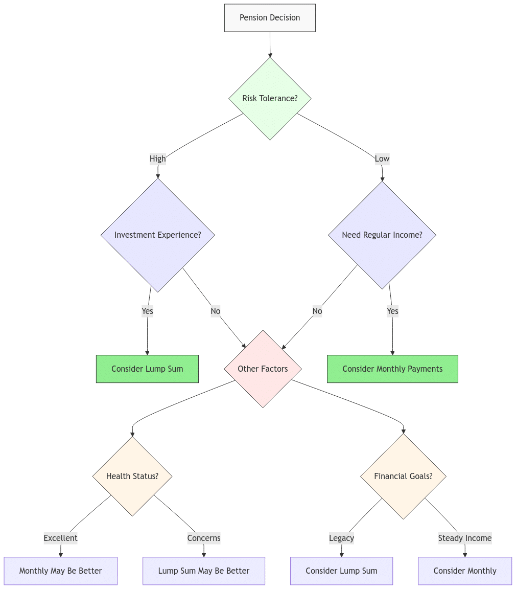 Choosing between a lump sum payout and monthly pension payments is a big decision. Here’s a table summarizing the key differences to help you decide what’s best for your situation: