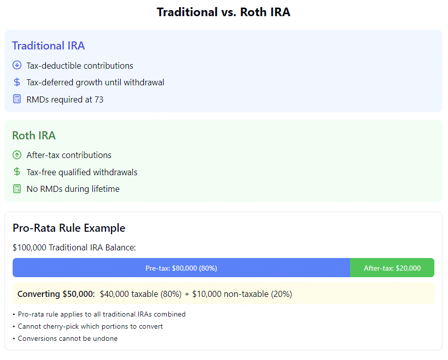However, it’s important to understand the pro-rata rule. If you have both pre-tax and after-tax money in your IRA, converting to a Roth IRA means you’ll pay taxes on a portion of the pre-tax amount.