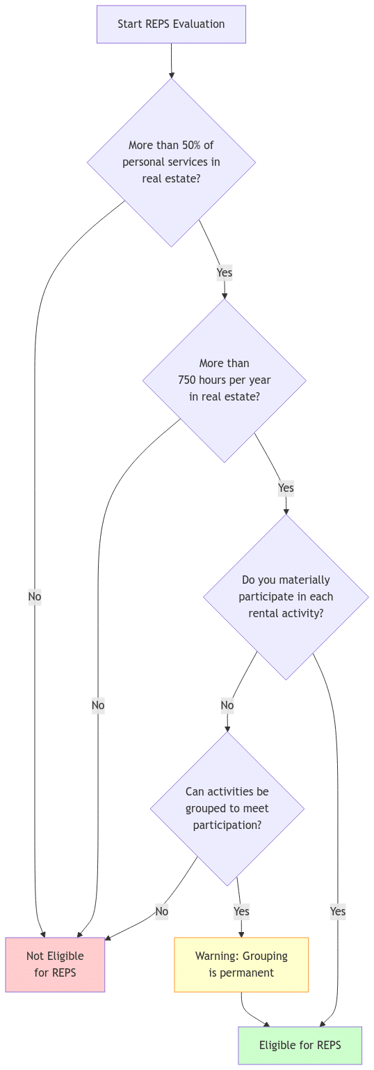 Material Participation: This means you’re regularly, continuously, and substantially involved in the operation of the rental property, such as managing the property, finding tenants, and handling maintenance. The IRS has seven tests to determine material participation, and it’s important to understand which ones apply to your situation. In some cases, grouping elections may be available, allowing you to combine multiple activities to meet the material participation requirements. However, be cautious with grouping elections, as you cannot ungroup them without IRS consent.