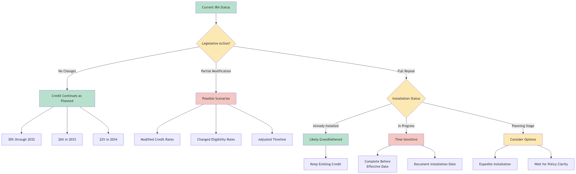 The political landscape can be unpredictable, and the possibility of the IRA being repealed or modified does exist. If this were to happen, the Residential Clean Energy Credit could be affected. The specific changes would depend on the new legislation, and it’s difficult to predict the exact outcome.