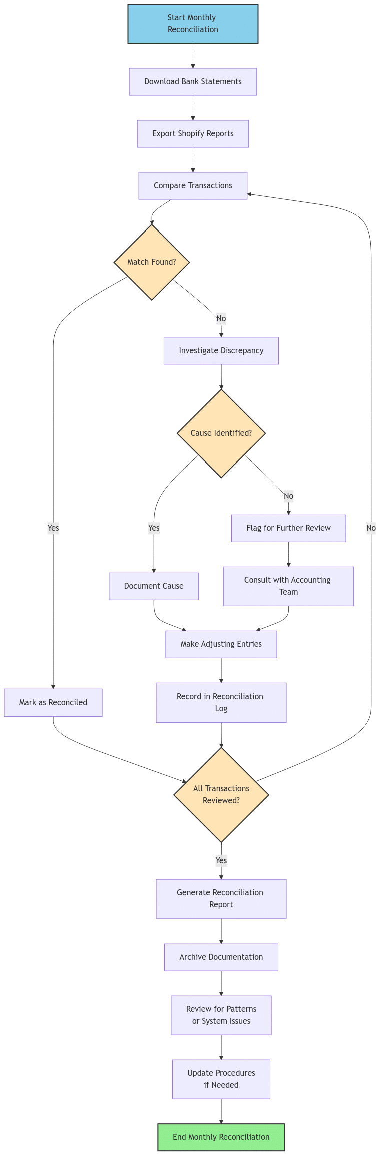 - Compare and Match: Compare transactions in your bank statements with those in your Shopify reports.