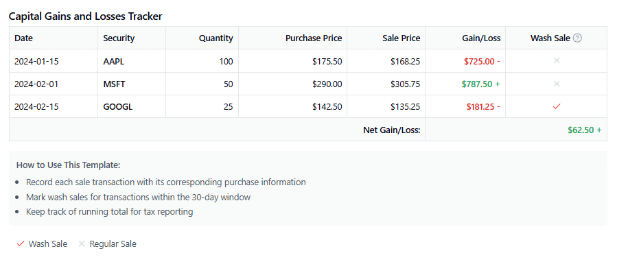 - Worksheet: Consider using a spreadsheet or tax software to track your gains, losses, and wash sales.