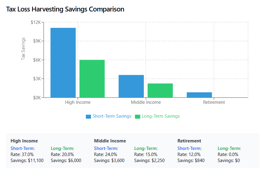 - High-Net-Worth Individual: Emily, in the 35% tax bracket, realizes $50,000 in short-term capital gains from selling stock. This means her gains are taxed at her ordinary income tax rate of 35%. She offsets $30,000 of these gains by selling other investments that have declined in value, saving $10,500 in taxes ($30,000 loss x 35% tax rate).