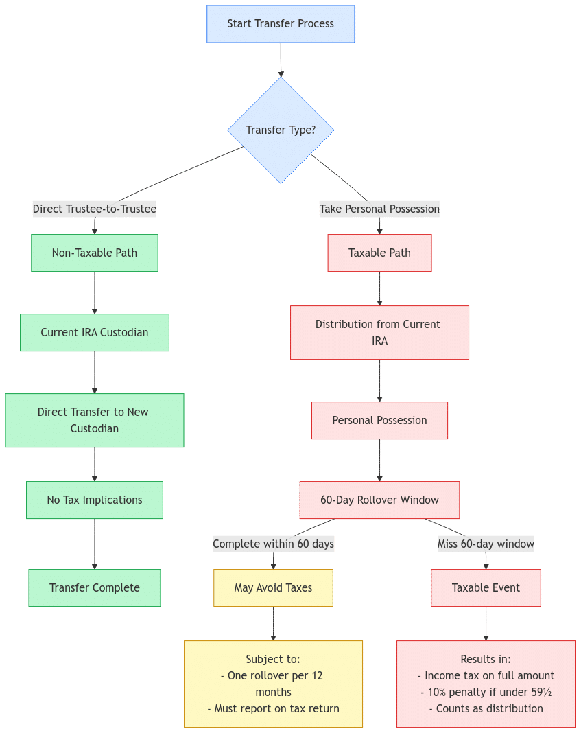 - Direct trustee-to-trustee transfers are generally not taxable.